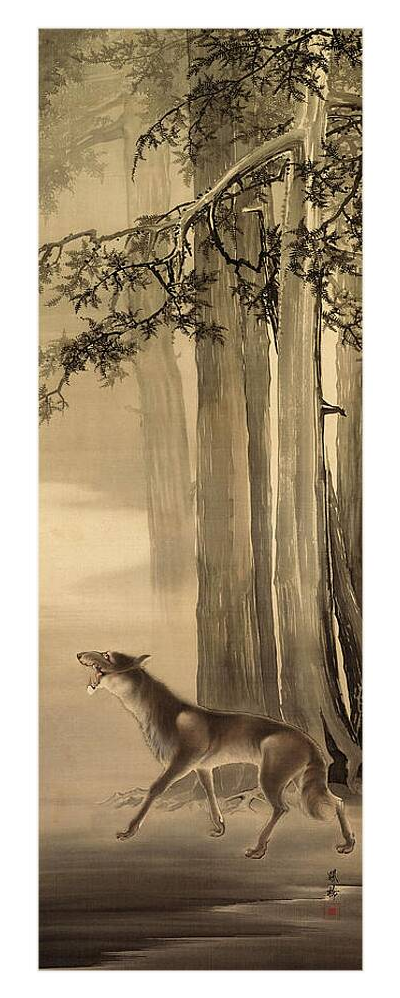 オオカミは日本の民間伝承や宗教において重要な存在であり、神々の使者と考えられており、物語では山の旅人を守るとも言われている。